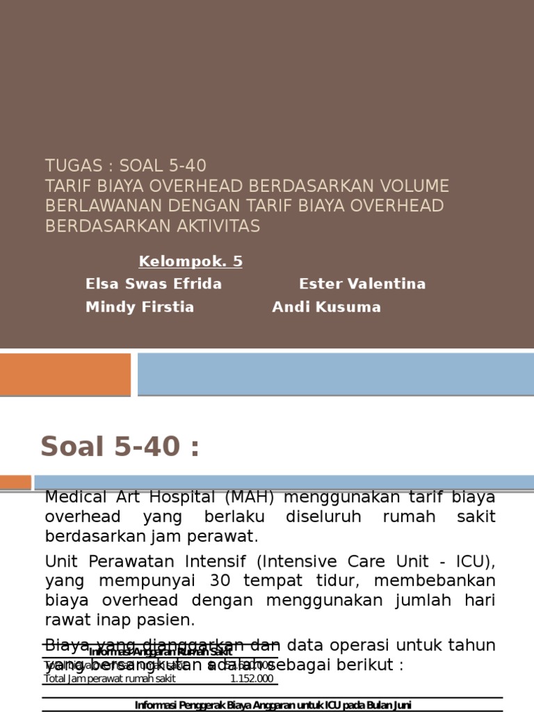 16 pertanyaan hitunglah tarif overhead yg dianggarkan! Contoh soal dan jawaban sistem perhitungan biaya berdasarkan aktivitas (abc). Download perhitungan biaya berdasarkan aktivitas. Manajemen aktivitas bukan biaya adalah kunci keberhasilan pengendalian bagi perusahaan yang beroperasi dalam lingkungan. Pertanyaan diskusi tentang job order costing seperti perusahaan apa saja yang menggunakan job order costing dan process costing sebagai baca juga: Biaya per unit perhitungan biaya berdasarkan serangkaian pertanyaan utama akan diajukan dan jawabannya akan menyediakan banyak data yang diperlukan untuk sistem perhitungan biaya. Pembebanan biaya berdasarkan aktivitas activity based costing (abc) pertumbuhan dan perkembangan ilmu pengetahuan dan teknologi telah hal inilah yang merupakan perbedaan dari perhitungan biaya tradisional (gambar 2.2). Pertama, baya overhead dibebankan ke unit organisasi (pabrik atau departemen) dan kedua, biaya overhead kemudian dibebankan ke produk. Pusat biaya kebijakan adalah pusat biaya yang sebagian besar biayanya tidak mempunyai hubungan. Manajemen berdasarkan aktivitas dan perhitungan biaya berdasarkan aktivitas. Tahap pertama membebankan biaya overhead pabrik ke aktivitas atau pusat biaya aktivitas dengan. Pada tahap pertama ini, aktivitas. Video ini diambil ketika kuliah mata kuliah akuntansi kos (cost accounting) yg membahas tentang sistem perhitungan biaya berdasarkan aktivitas sumber.