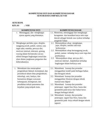 Skl Ki Dan Kd Seni Budaya Kelas 7 Kurikulum 2013 : Analisis Skl Ki Kd Ppkn Kelas Viii Smp Kurikulum 2013 Revisi 2017 K13 Zaman Now - Rpp 1 lembar seni budaya kelas x semester 2.